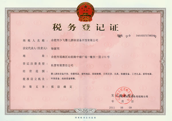 發證機構:   安徽省合肥市地方稅務局 發證時間 :   2011-06-09