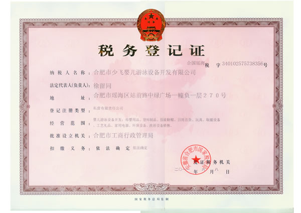 發證機構:   安徽省合肥市國家稅務局 發證時間 :   2011-06-08