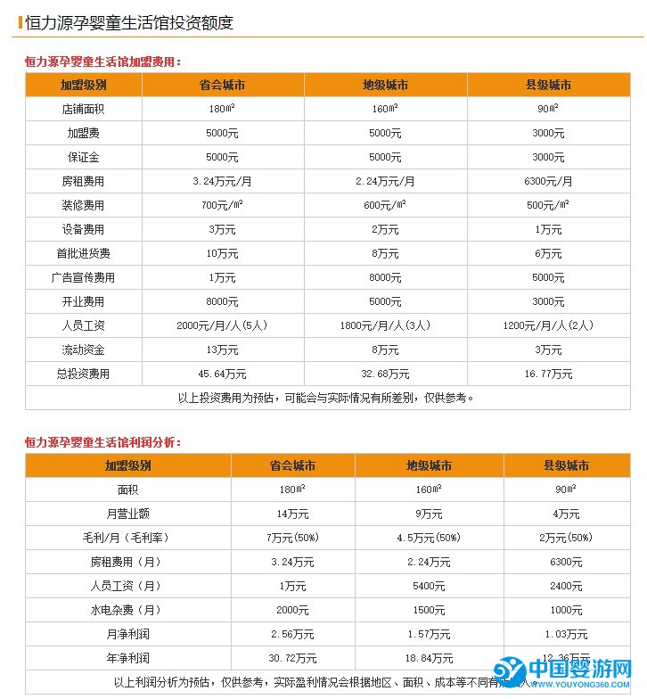 當然恒力源孕嬰童生活館加盟的費用不是這樣唯一的情況,要知道不同的地區開店成本是不一樣的,不同面積的店鋪需要資金也是不同的,為了讓大家更詳細的了解恒力源孕嬰童生活館加盟費,小編為大家制作了下圖的表格,希望可以幫助大家詳細的了解恒力源孕嬰童生活館的加盟費收取情況!