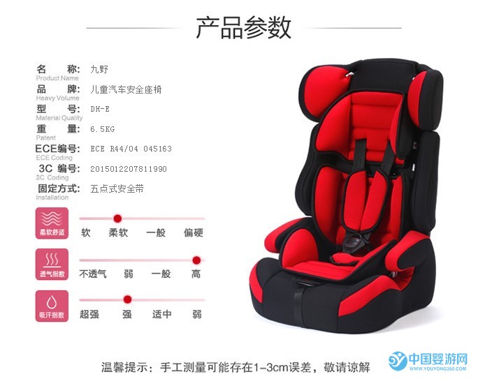 | 安裝方式 | 三點式安裝 | 人體固定方式 | 五點式/三點式/Isofix | 檢測標準 | 歐標ECE |