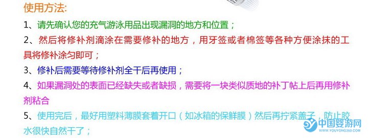 NO3:在充氣產(chǎn)品漏氣后,先找到漏氣點(diǎn),放氣后,直接涂在漏氣點(diǎn)上及周圍,待膠水完全干后(一般4小時左右),建議24小時后再充氣使用。
